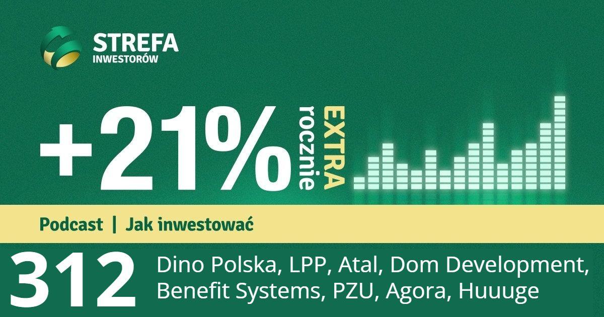 21% Rocznie 312 EXTRA | Podcast | Jak inwestować - Dino Polska, LPP, Atal, Dom Development, Benefit Systems, PZU, Agora, Huuuge