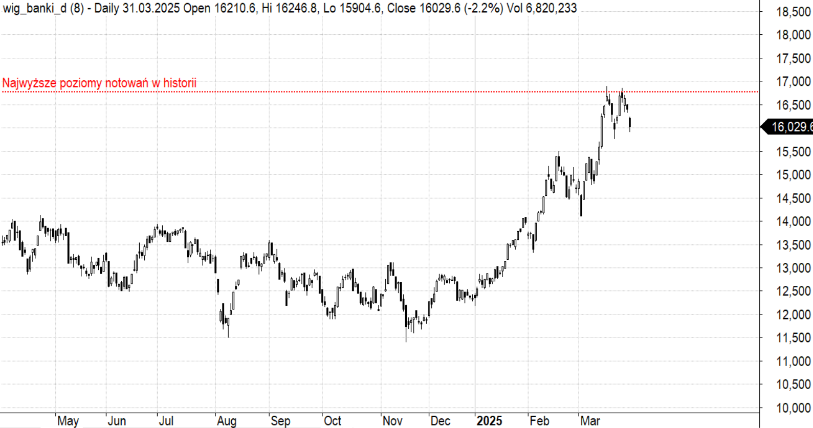 Notowania WIG-banki w ciągu ostatnich 12 miesięcy
