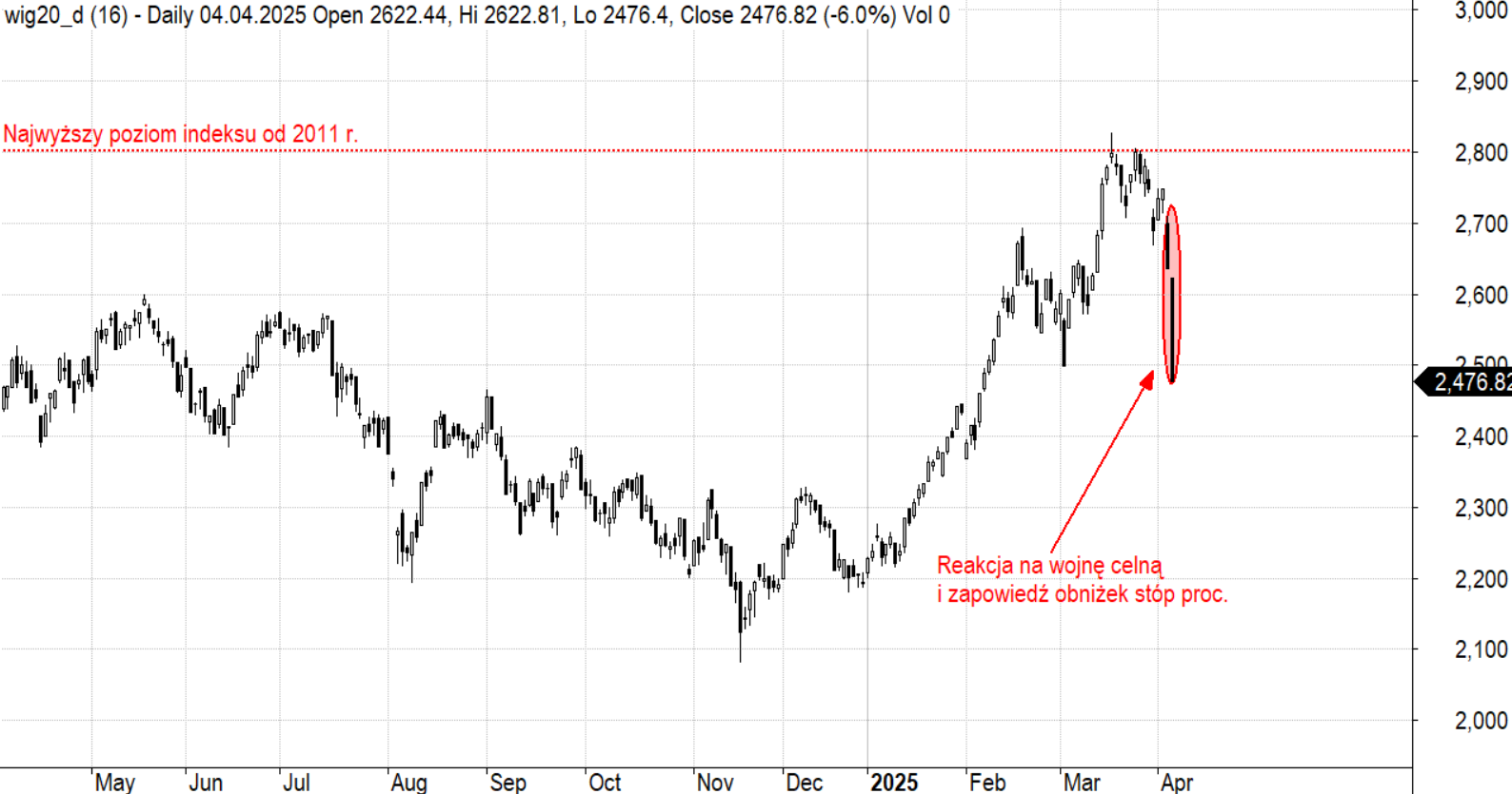 Wojna celna wytoczona przez USA, w połączeniu z gołębim zwrotem Rady Polityki Pieniężnej (RPP), uderzyła w światowe indeksy.