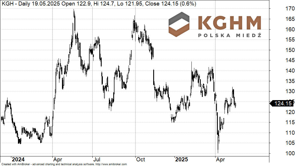 Kurs akcji KGHM od początku 2024 roku