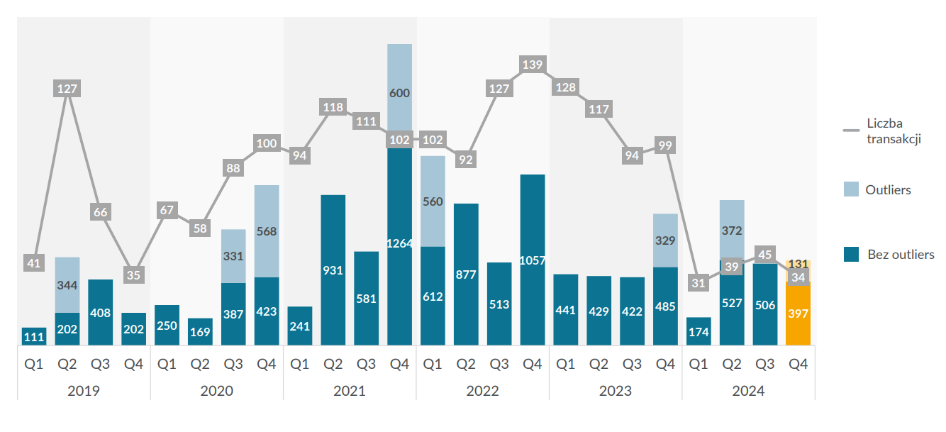 „Pod względem inwestycji jesteśmy wciąż małym rynkiem. Tym samym kilka dużych transakcji w znaczącym stopniu może zakrzywić obraz sytuacji” komentuje dla Strefy Inwestorów Piotr Mietkowski, dyrektor zarządzający bankowością inwestycyjną na Europę Środkową i Wschodnią w BNP Paribas. Zjawisko ilustruje przykład inwestycji w SunRoof. Do spółki w 2022 r. popłynęło 134 mln zł, co jest kwotą porównywalną z wartością inwestycji w całym 2024 r.