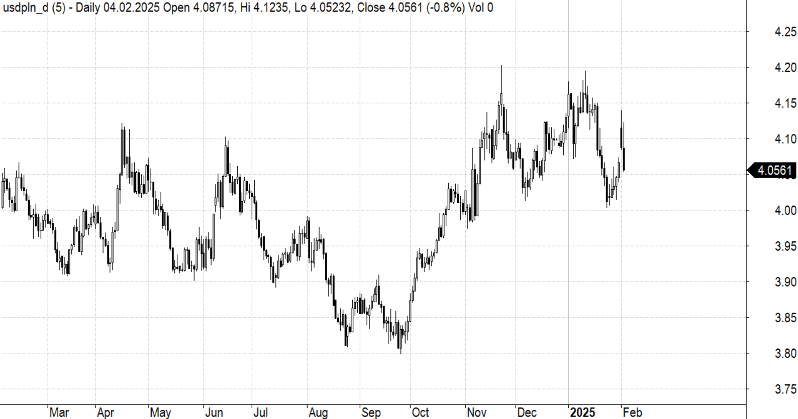 Jednym z kluczowych aspektów, który pomógł rodzimej giełdzie w ostatnich tygodniach, jest znaczące umocnienie złotego względem dolara. Podczas gdy w pierwszej połowie stycznia za dolara płacono niemal 4,2 zł, na początku lutego jest to 4,03 zł.