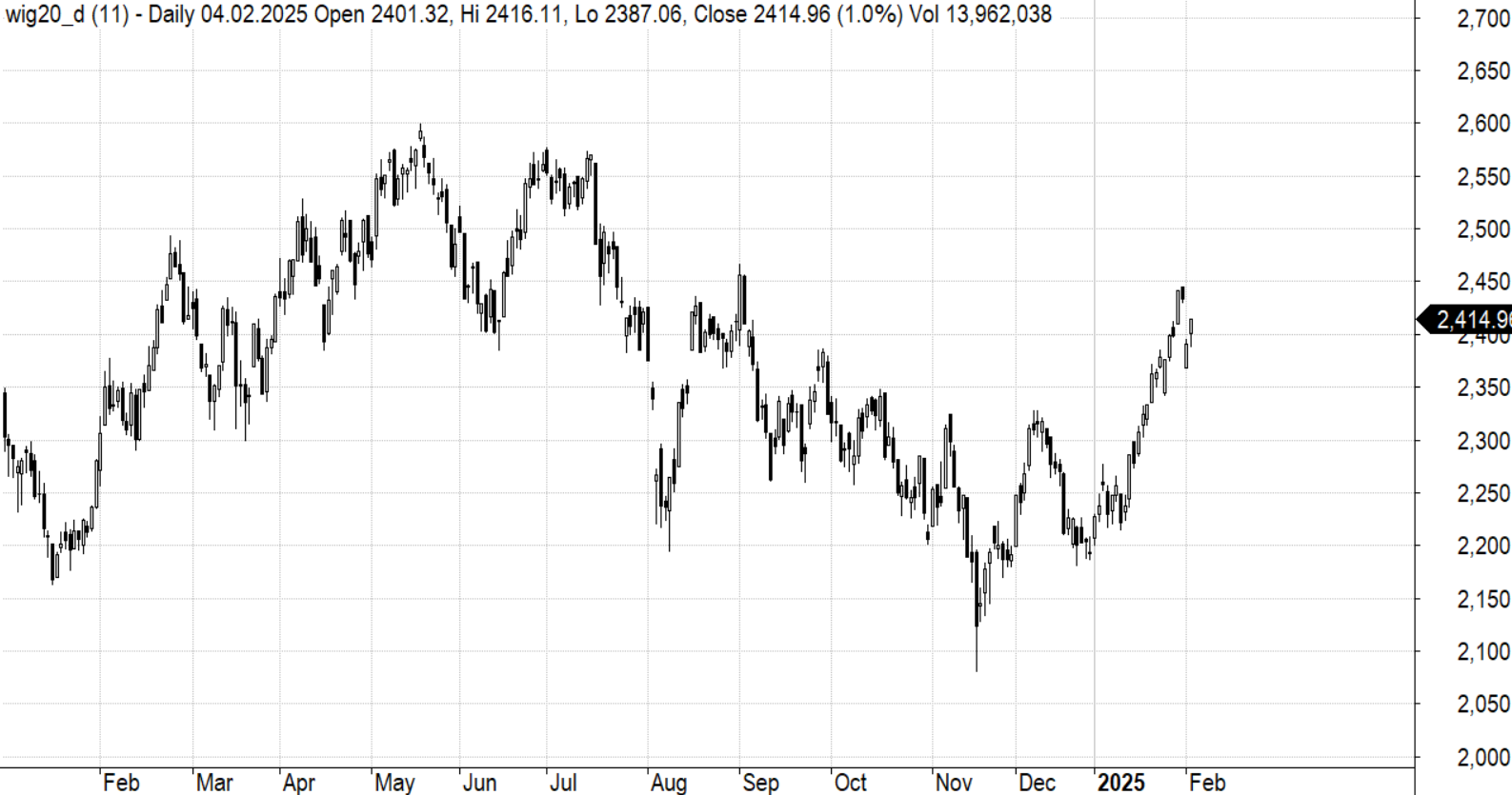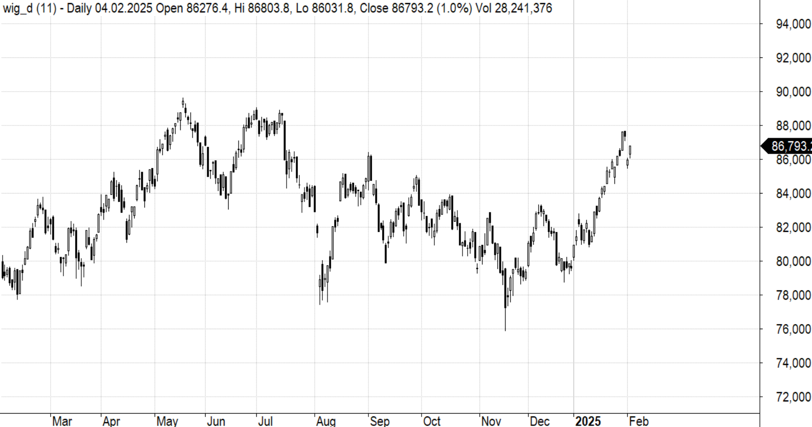 „Za ostatnie wzrosty, jak zwykle, odpowiadać może kilka kwestii. Po pierwsze, taniość polskich akcji po słabej II połowie 2024 r. Po drugie, inne rynki są w hossie, vide nowy rekord DAX. Po trzecie, nadzieja na zakończenie wojny w Ukrainie w tym roku” dodaje Sebastian Buczek, prezes i założyciel Quercus TFI.