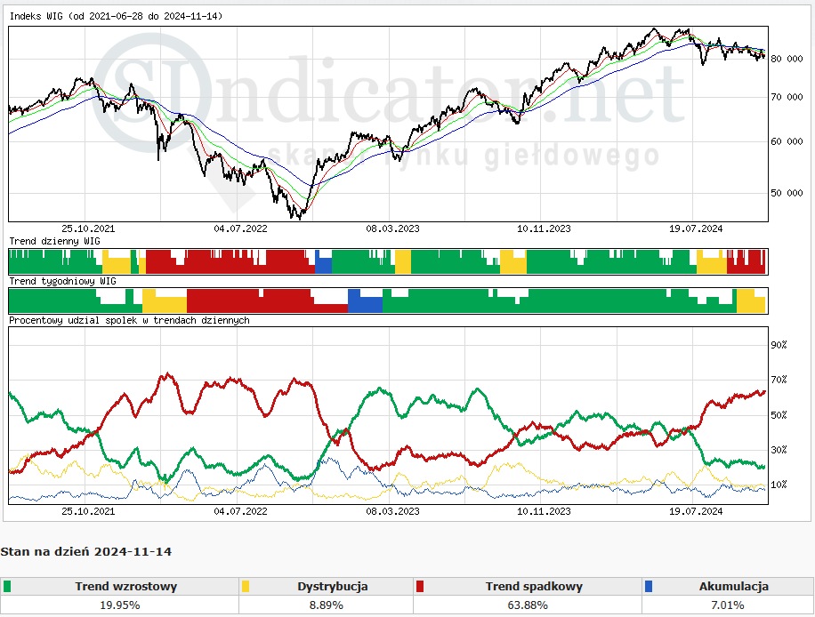 | XTB (XTB) | Silny trend wzrostowy | Dystrybucja | z 45,6% na 50,7% | z 56,3% na 57,2% | 18,7% | 15,8% |