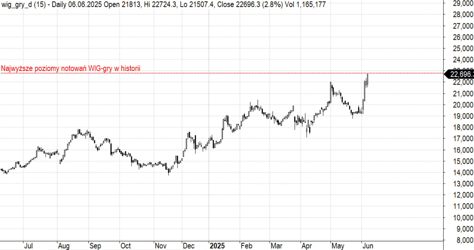 Notowania indeksu WIG-gry w ciągu ostatnich 12 miesięcy