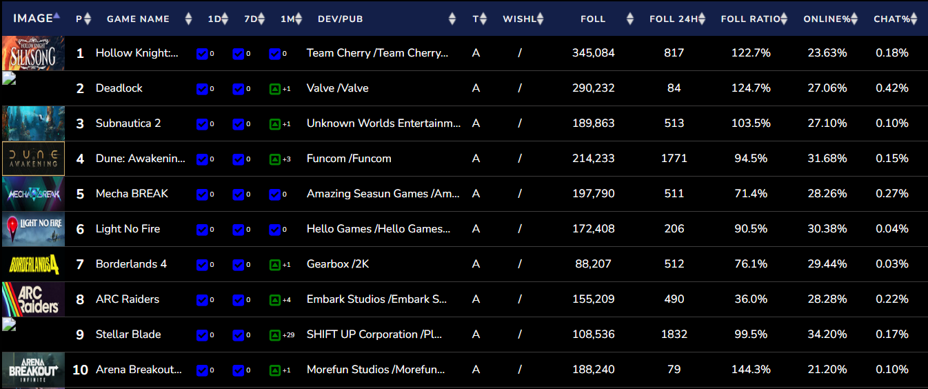 Ranking 10 gier z największą wishlistą na platformie Steam