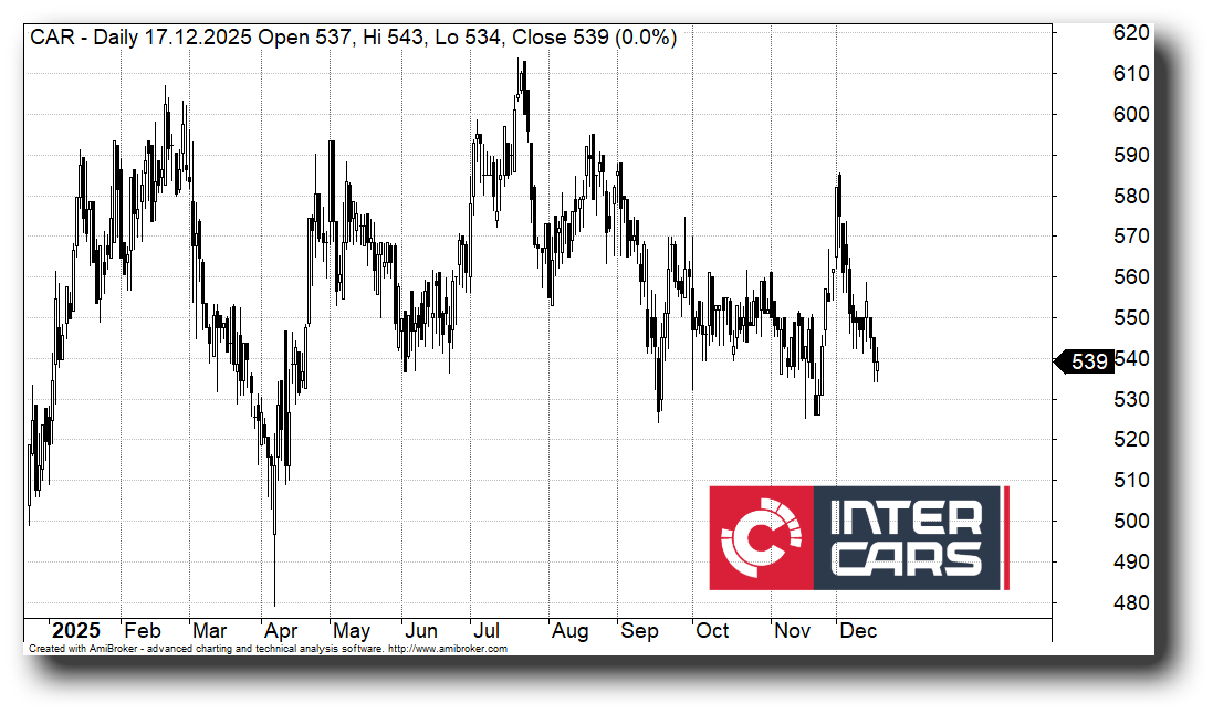 Inter Cars lepiej radzi sobie na wymagającym rynku niż konkurenci, utrzymując rentowność, podczas gdy konsolidacja powinna poprawić dynamikę rynku w średnim terminie. Wycena wygląda atrakcyjnie (ok. 9x P/E’26) przy poprawiającym się momentum zysków.