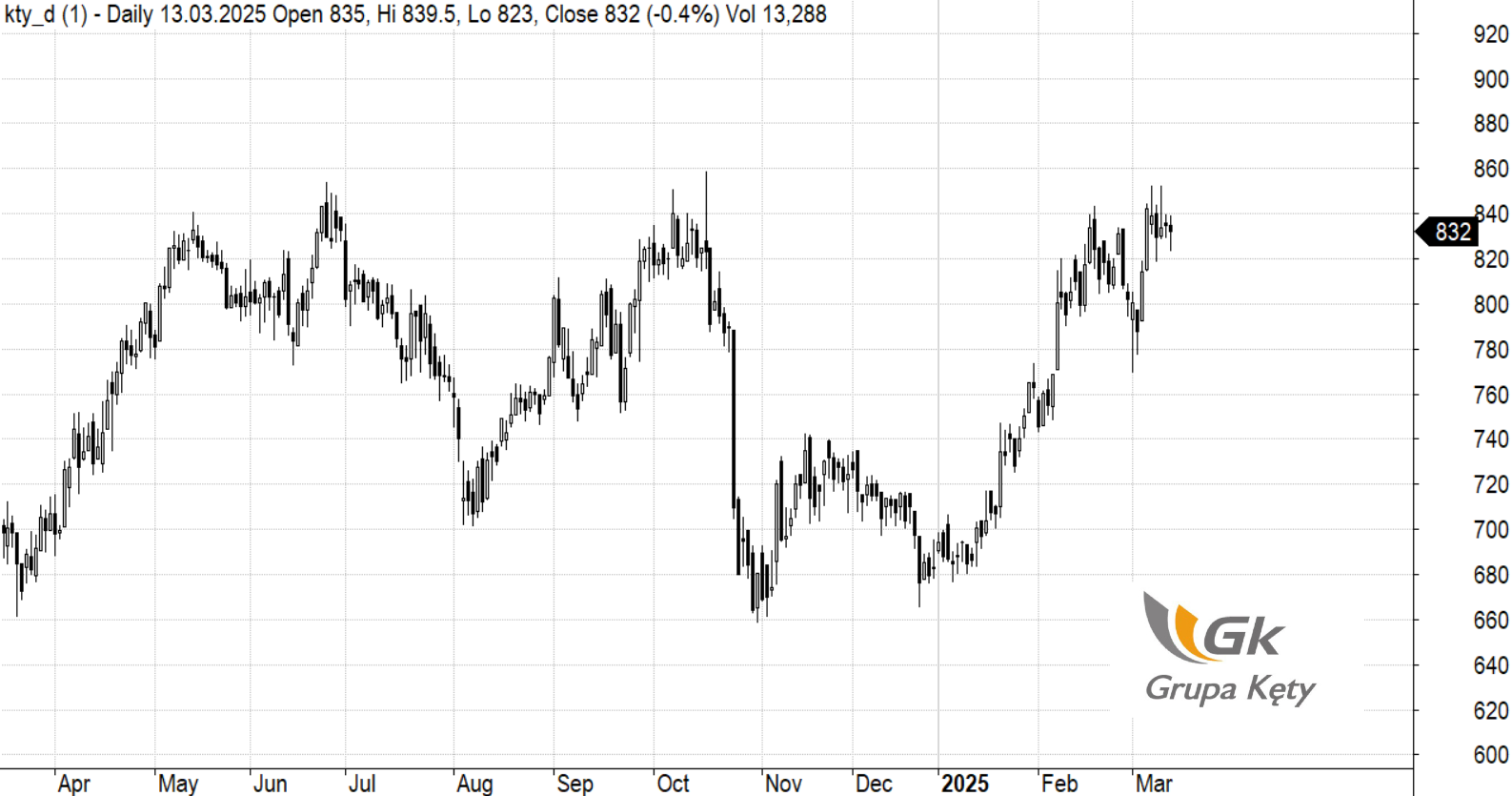 Notowania Grupy Kęty w ciągu ostatnich 12 miesięcy