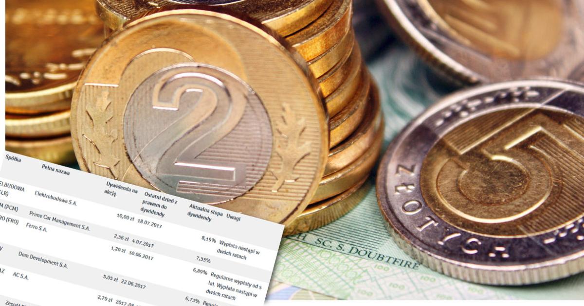 Lista dywidend, jakie w 2017 roku wypłacą spółki z WIG20, mWIG40 i sWIG80