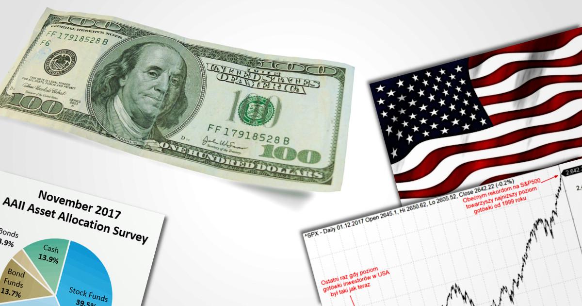 Gotówka ma najmniejszy od 18 lat udział w portfelach amerykańskich inwestorów – wynika z badania przeprowadzonego przez American Association of Individual Investors. Przypomnijmy, że w 2000 roku pękła bańka na spółkach technologicznych. Eksperci mówią, że jeszcze nie jest za późno na zajmowanie pozycji na akcjach, ale pod warunkiem, że dokona się bardzo dobrej dywersyfikacji geograficznej.