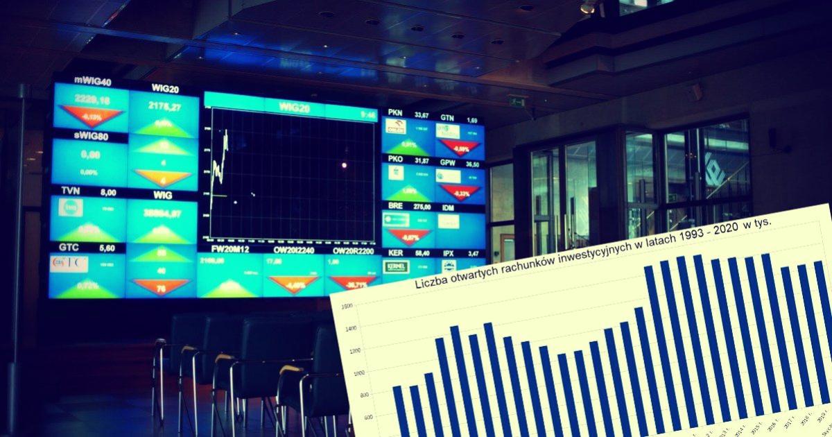 Najwięcej rachunków maklerskich było w 2012 r. wtedy banki raportowały aż 1,5 mln kont inwestycyjnych. Największy wzrost liczby rachunków w ostatnich latach miał miejsce w 2010 roku za sprawą dużych prywatyzacji. To właśnie w tym roku na giełdzie debiutowało PZU i GPW. Na rynku zostało stworzonych wtedy 344 nowych rachunków, co oznacza wzrost o 30% rok do roku. Największy spadek zainteresowania giełdą miał miejsce stosunkowo niedawno, bo w roku 2018, kiedy zniknęło 10% rachunków inwestycyjnych zmniejszając całkowitą ich liczbę do 1 253 tys.