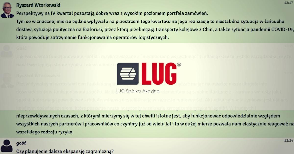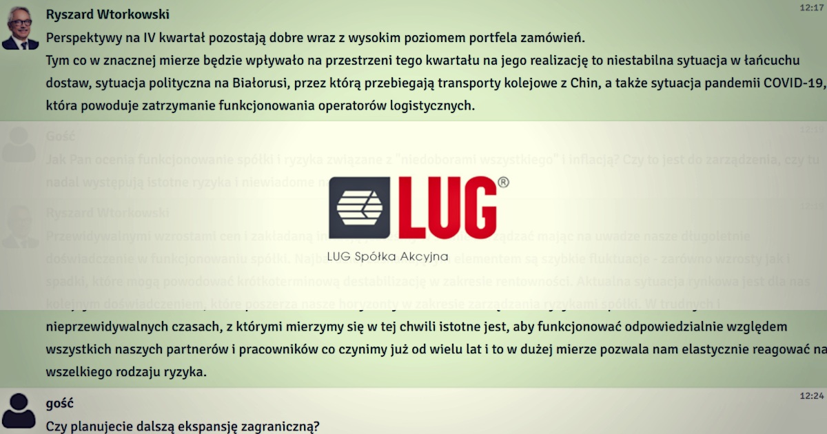 „Perspektywy na IV kwartał pozostają dobre wraz z wysokim poziomem portfela zamówień” - relacja czatu z prezesem zarządu Grupy LUG
