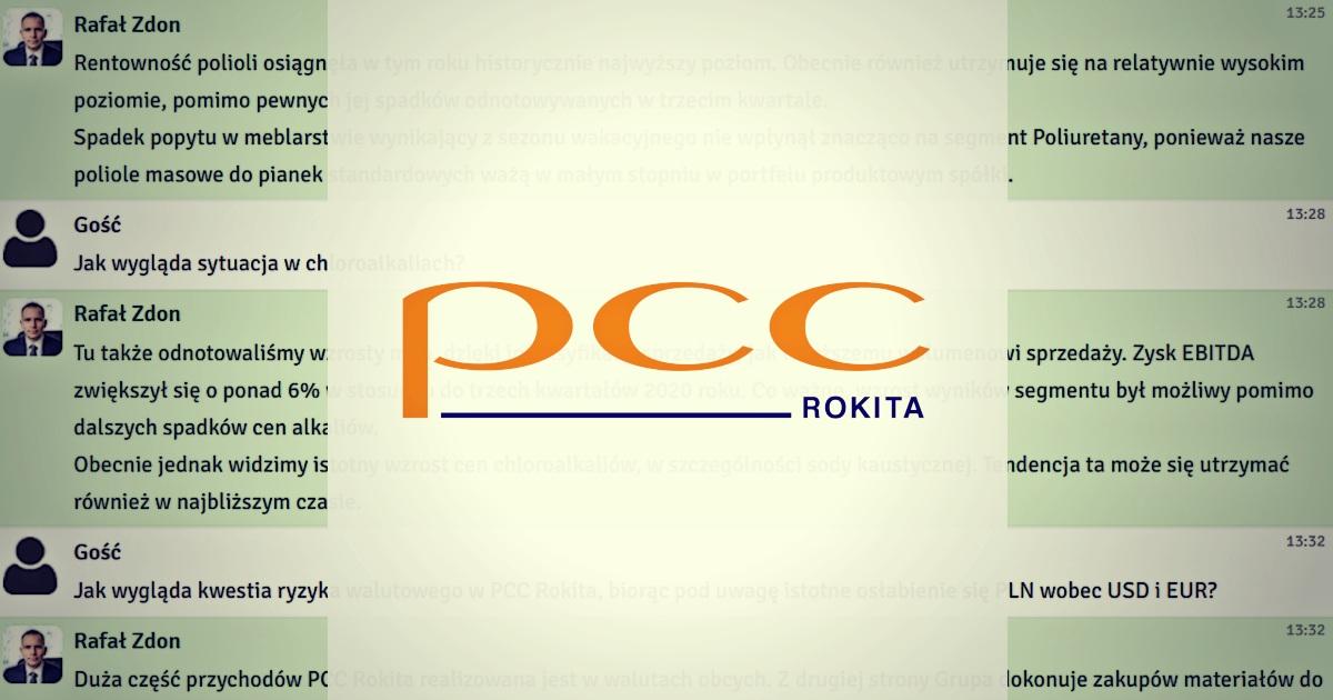 „Wzrosty odnotowały wszystkie nasze segmenty produkcyjne. Szczególnie dobra sytuacja panowała na rynku poliuretanów” - relacja czatu z wiceprezesem zarządu PCC Rokita