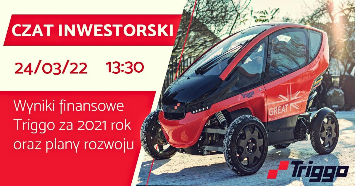 W czwartek 24 marca 2022 roku o godz. 13:30 zapraszamy na czat inwestorski z prezesem zarządu Triggo, Rafałem Budweilem oraz wiceprezesem zarządu, Jackiem Koniorem. Podczas spotkania zostaną omówione wyniki finansowe spółki za 2021 rok oraz dalsze plany rozwoju. Inwestorzy będą mogli zadawać pytania.