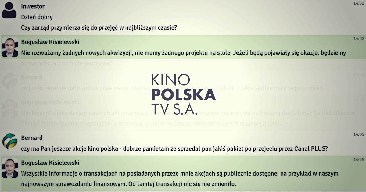 „Jesteśmy w doskonałej kondycji finansowej i dalej chcemy się rozwijać w tym samym tempie” - relacja czatu z prezesem Grupy Kino Polska TV