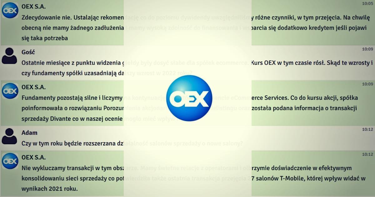 „Środki pozyskane z ostatnich transakcji są na tyle znaczące że pozwalają nam jednocześnie podzielić się zyskiem z akcjonariuszami i inwestować we wzrost” - relacja czatu z zarządem OEX
