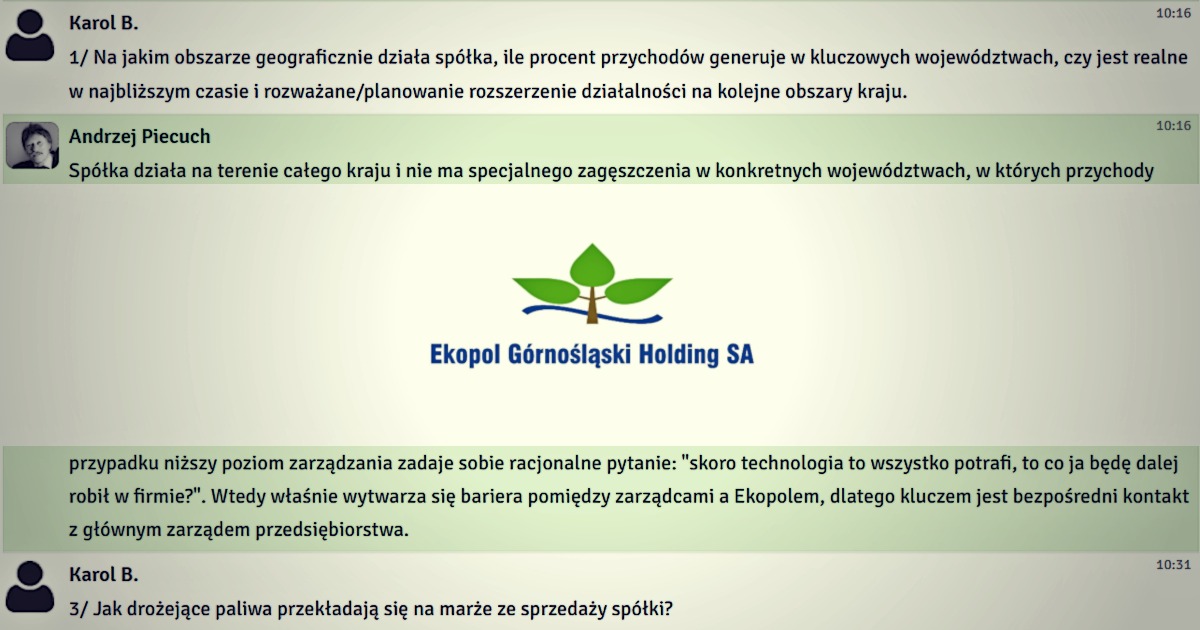 „Liczymy, że w najbliższej przyszłości technologia Mikrostacje.pl będzie stanowiła ok. 70% marży spółki” - relacja czatu z prezesem Ekopol Górnośląski Holding