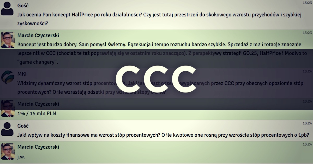 Prezes @GrupaCCC Marcin Czyczerski odpowiada na pytania inwestorów podczas czatu inwestorskiego. Nie brakuje pytań o sytuację finansową spółki, ale również otoczenie rynkowe.