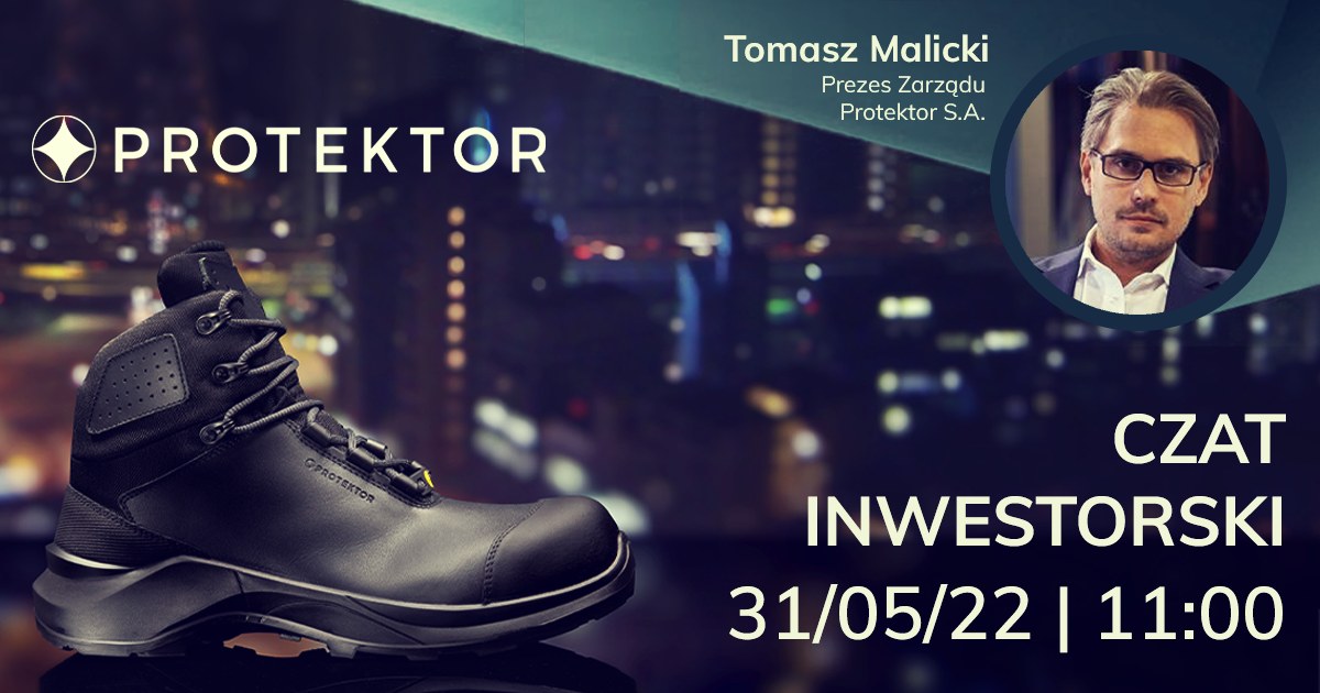 O wynikach finansowych Protektor za I kwartał 2022 roku oraz planach rozwoju będzie można porozmawiać podczas czatu inwestorskiego z prezesem zarządu, Tomaszem Malickim. Spotkanie odbędzie się we wtorek, 31 maja 2022 r. o godz. 11:00.
