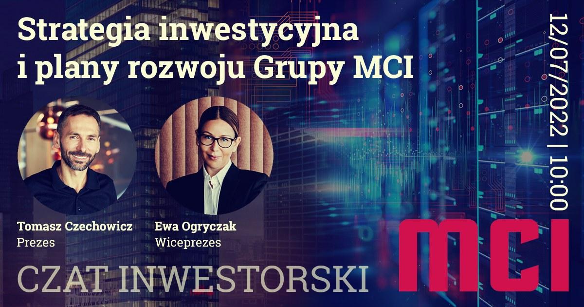 O strategii inwestycyjnej Grupy MCI oraz planach rozwoju będzie można porozmawiać z prezesem zarządu, Tomaszem Czechowiczem oraz wiceprezes zarządu, Ewą Ogryczak. Spotkanie odbędzie się we wtorek, 12 lipca 2022 r. o godz. 10:00.
