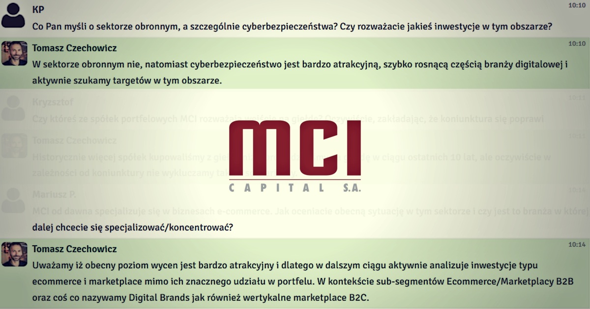 „Chcemy być wiodącym środkowoeuropejskim inwestorem PE na rynku cyfrowym w obszarze Mid Market” - relacja czatu z zarządem Grupy MCI