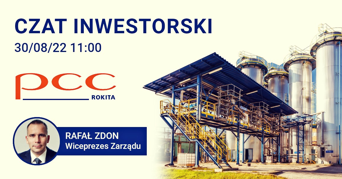 We wtorek, 30 sierpnia 2022 r. o godz. 11:00 zapraszamy do uczestnictwa w czacie inwestorskim z wiceprezesem zarządu PCC Rokita, Rafałem Zdonem.