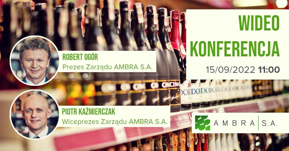 Przy okazji publikacji raportu finansowego za rok 2021/2022 Grupa AMBRA organizuje wideokonferencję z zarządem spółki: prezesem zarządu, Robertem Ogórem oraz wiceprezesem zarządu, Piotrem Kaźmierczakiem. Spotkanie odbędzie się w czwartek, 15 września 2022 r. o godz. 11:00. Podczas konferencji uczestnicy będą mogli zadawać pytania online.