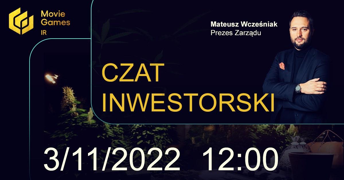 O aktualnej sytuacji oraz planach produkcyjnych i wydawniczych Grupy Movie Games będzie można porozmawiać z prezesem zarządu, Mateuszem Wcześniakiem. Spotkanie odbędzie się w czwartek, 3 listopada 2022 r. o godz. 12:00. Zapraszamy do zadawania pytań już teraz.