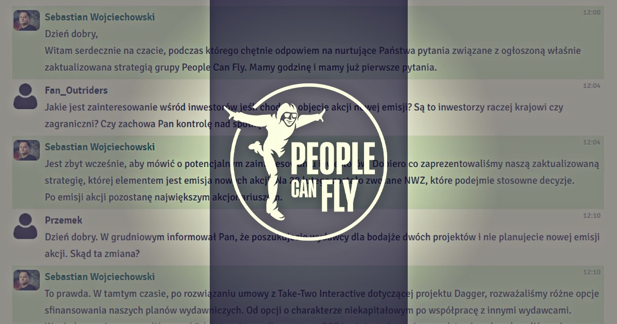 W czwartek, 2 lutego 2023 r. odbył się czat inwestorski z prezesem zarządu PCF Group, Sebastianem Wojciechowskim. Podczas spotkania rozmawialiśmy o aktualizacji strategii rozwoju. Inwestorzy zadawali również pytania o planowaną emisję akcji, plan produkcyjny oraz współpracę z zewnętrznymi wydawcami.