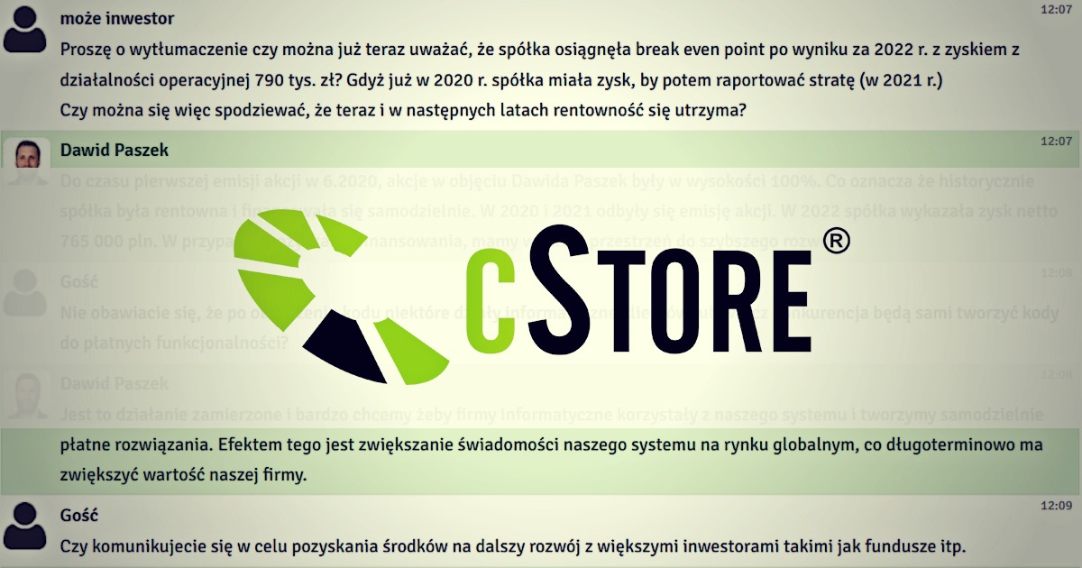 „W przypadku pozyskania finansowania, mamy większą przestrzeń do szybszego rozwoju” - relacja czatu z prezesem zarządu CStore