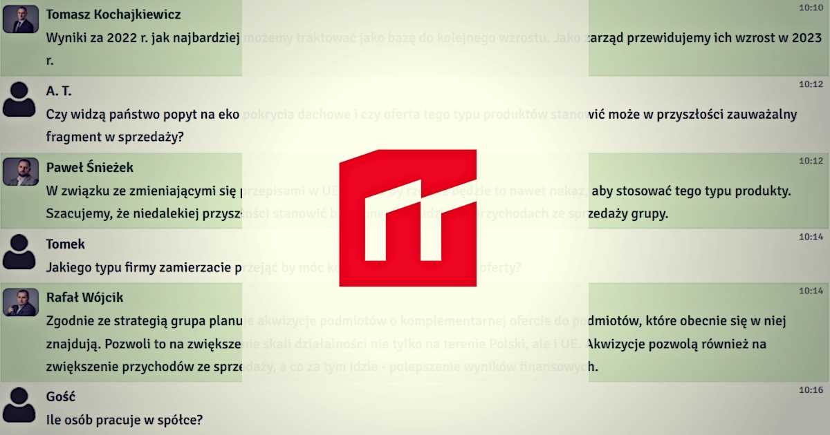 „Spółka zgodnie z przyjętą strategią na lata 2022-2027 planuje ekspansję na inne rynki europejskie” - relacja czatu z zarządem Roof Renovation