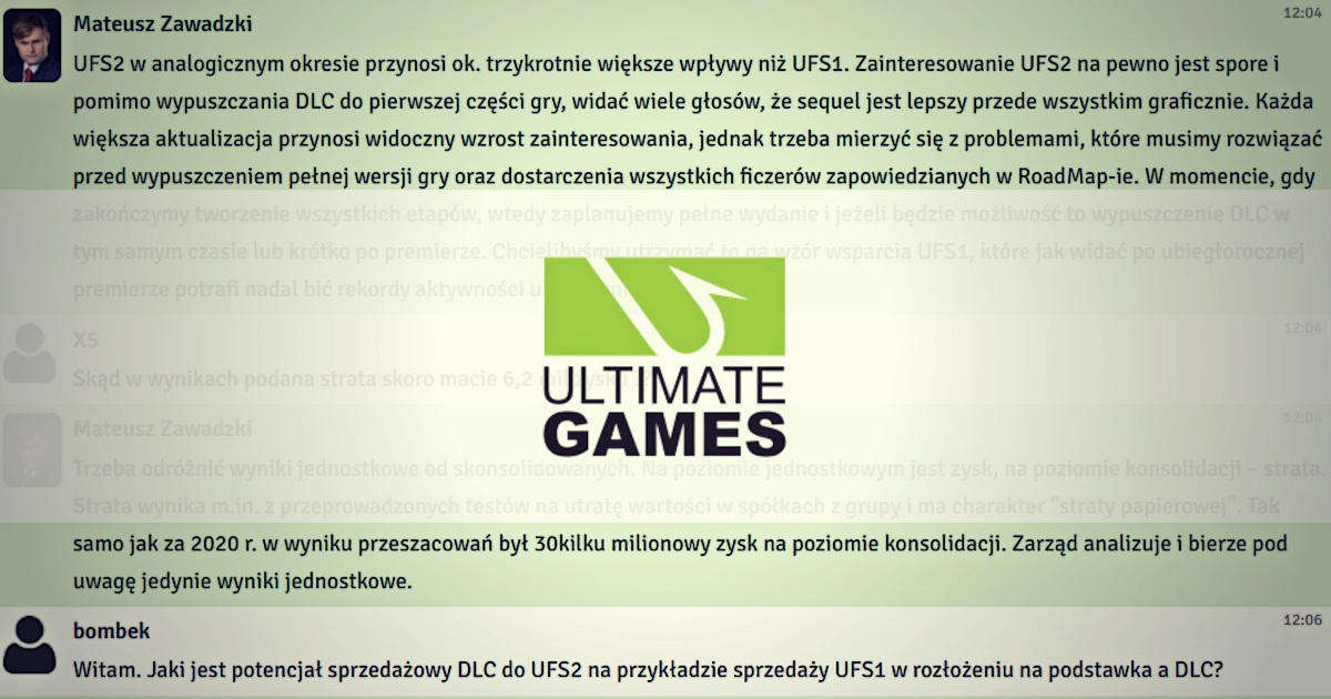 „UFS2 w analogicznym okresie przynosi ok. trzykrotnie większe wpływy niż UFS1” - relacja czatu z prezesem zarządu Ultimate Games