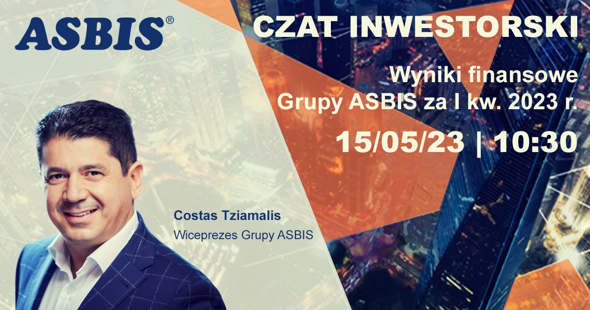 O wynikach finansowych ASBIS za I kwartał 2023 roku będzie można porozmawiać z wiceprezesem grupy, Costasem Tziamialisem. Spotkanie odbędzie się w poniedziałek, 15 maja 2023 r. o godz. 10:30. Zapraszamy do zadawania pytań już teraz.