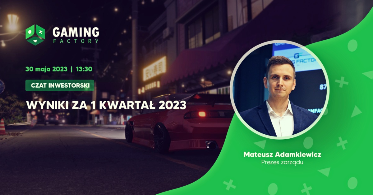 We wtorek, 30 maja 2023 roku o godz. 13:30 zapraszamy na czat inwestorski z prezesem zarządu Gaming Factory, Mateuszem Adamkiewiczem. Podczas spotkania zostaną omówione wyniki finansowe za I kwartał 2023 roku oraz dalsze plany rozwoju. Możliwość zadawania pytań została już uruchomiona.
