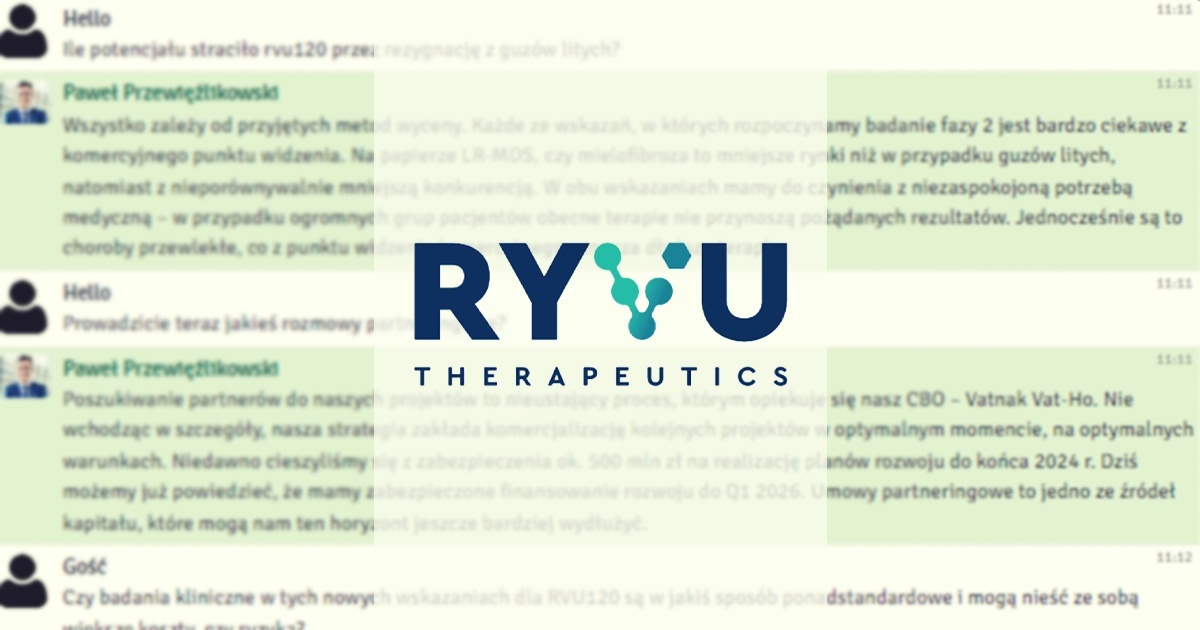 "Nigdy w historii nie byliśmy tak dobrze wyposażeni do realizacji strategii. Potencjał RVU120 jest znacznie większy niż mogłoby się dziś wydawać" - relacja czatu z zarządem Ryvu Therapeutics