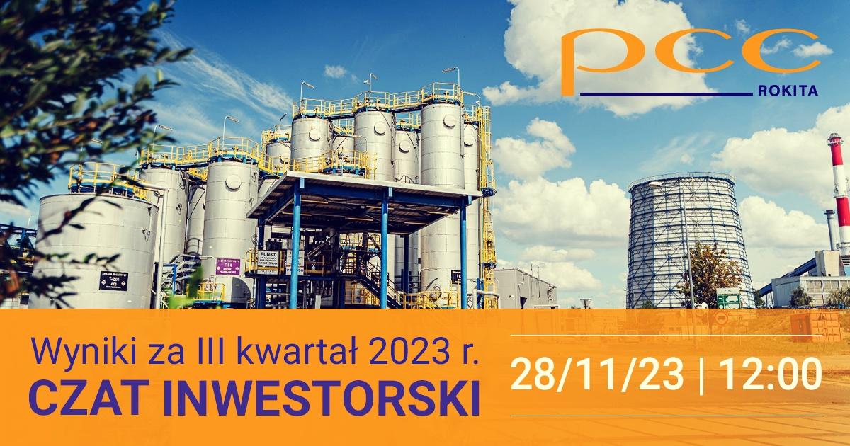 We wtorek, 28 listopada o godz. 12:00 zapraszamy do uczestnictwa w czacie inwestorskim z wiceprezesem zarządu PCC Rokita, Rafałem Zdonem. Podczas spotkania zostaną omówione wyniki finansowe spółki za III kwartał 2023 r.