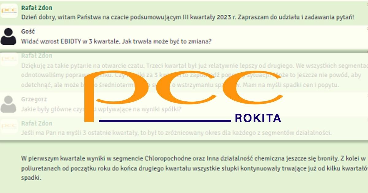 We wtorek, 28 listopada 2023 odbył się czat inwestorski z wiceprezesem PCC Rokita. Tematem przewodnim spotkania były wyniki grupy za III kwartały 2023 r.