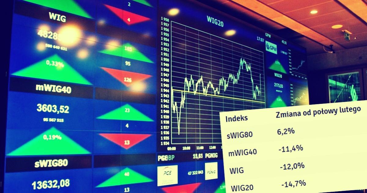 Do dziś indeks sWIG80 praktycznie zanegował spadki i jest aż o 6% wyżej niż był w połowie lutego. Indeks mWIG40 jeszcze nie wrócił do poziomu sprzed 5 miesięcy i jest 11,4% niżej, ale i tak jest to wynik lepszy od wartości indeksu WIG20, który wciąż jest 14,7% poniżej lutowych szczytów.