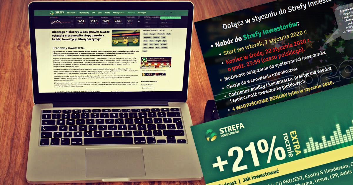Rejestracja do części premium serwisu Strefa Inwestorów odbywa się w ramach naborów. Jest to jedyny moment, w którym do społeczności inwestorów mogą dołączyć nowe osoby. Również tylko w tym czasie byli użytkownicy mogą wznowić swoje członkostwo. Nabór trwa od 7 do 22 stycznia 2020 r. Właśnie w tym czasie możliwe jest uzyskanie dostępu do części premium Strefy Inwestorów oraz do atrakcyjnych bonusów.