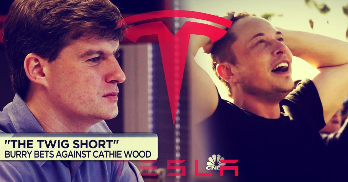 Burry był niedźwiedzio nastawiony do akcji Tesli. Powołując się na swoje doświadczenie w rozpoznawaniu baniek giełdowych, które pękają, Burry wierzył, że Tesla jest kolejną firmą, która doświadczy znacznej dewaluacji. Burry regularnie zamieszczał na Twitterze negatywne opinie o akcjach Tesli, by wkrótce potem skasować i dezaktywować swoje konto. Opis akcji Tesli autorstwa Burry'ego zawierał stwierdzenia, że inwestycja spółki w Bitcoina miała odwrócić uwagę od problemów z jakością oraz inwestorzy powinni się cieszyć póki jeszcze mogą. Jak opisuje legendarny niedźwiedź, pozycja nie była duża.