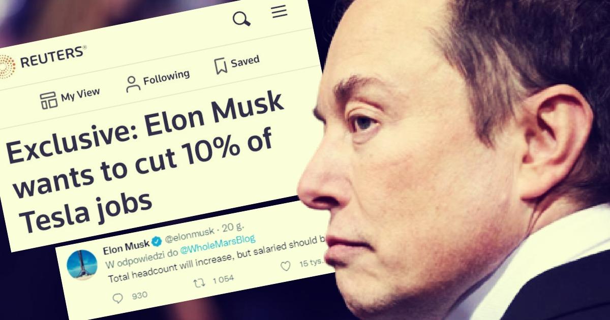 Akcje Tesli w piątek dostały mocno po głowie. Nagłówek agencji Reuters o redukcji zatrudnienia wywołała dużo zamieszania. Później Musk odpowiedział na tweeta zawierającego fragmenty e-maila od niego z którego wynikało, że Tesla zamierza ograniczyć zatrudnienie tylko do pracowników najemnych. Tesla oficjalnie nie skomentowała sprawy.