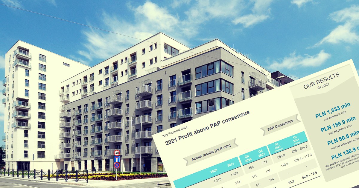 W 2021 r. Echo Investment wypracowała 189 mln zł zysku netto, znaczenie przewyższając oczekiwania rynku. Spółka pozytywnie ocenia obecną sytuację na rynku mieszkaniowym, licząc na dalszy wzrost cen i utrzymanie marż z prowadzonych inwestycji.