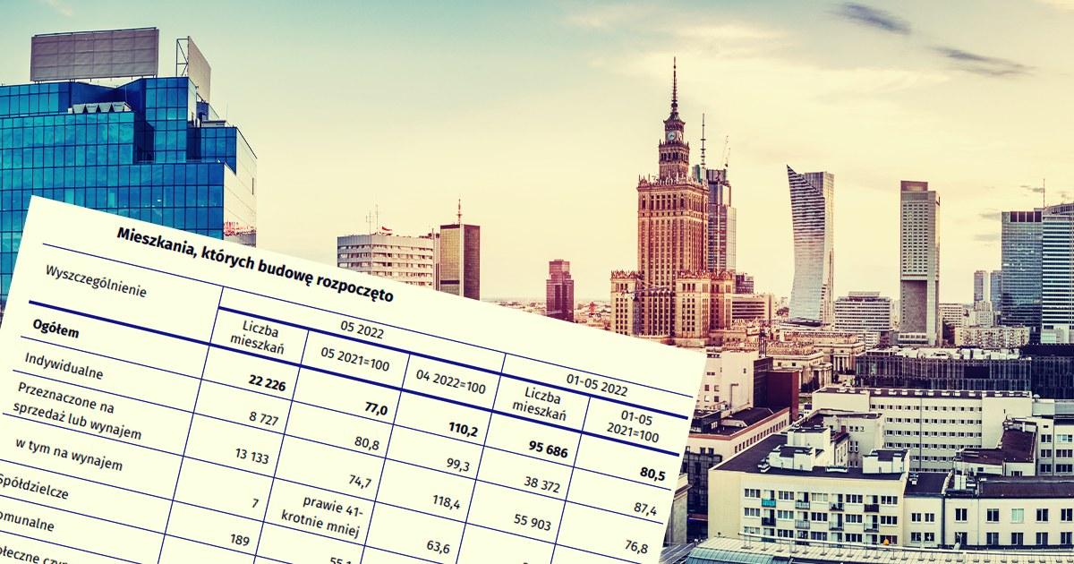 O 23% rok do roku spadła ilość mieszkań, których budowę rozpoczęto do końca maja 2022 r.