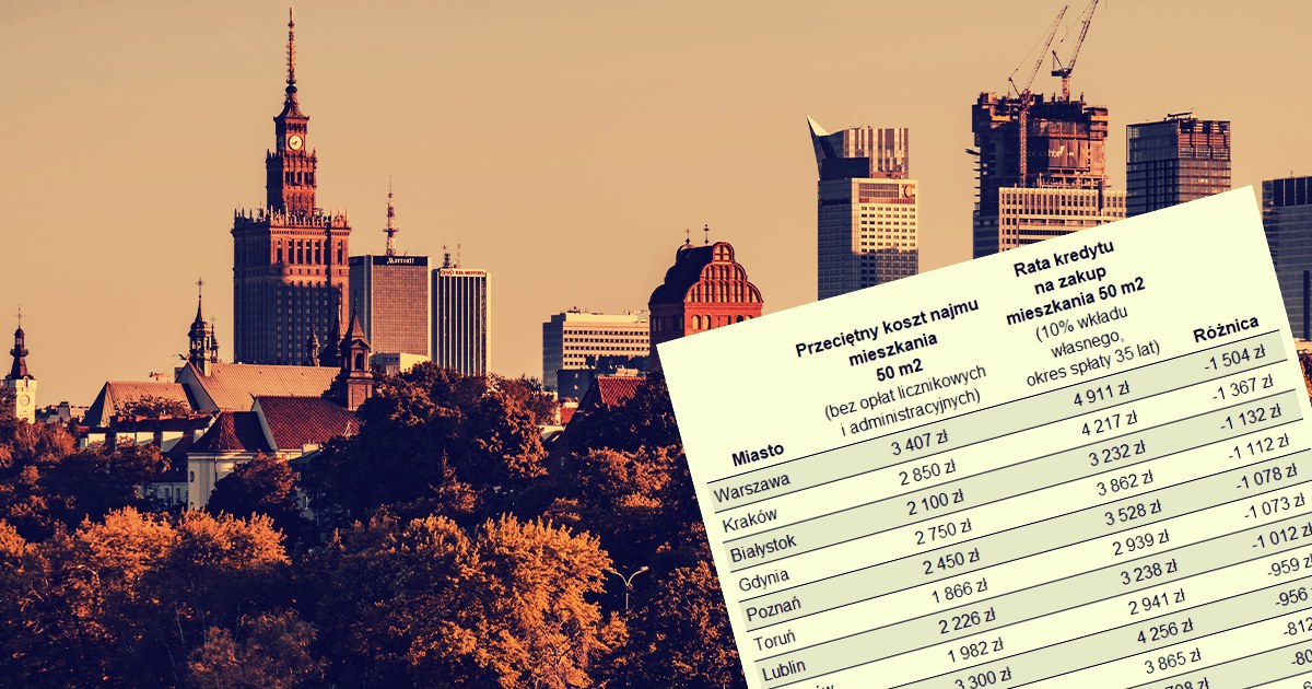 W Toruniu i Białymstoku rata kredytu na mieszkanie o powierzchni 50 mkw. jest ponad połowę wyższa, niż stawka najmu takie samego lokalu. Największe różnice odnotowano w Warszawie (1 504 zł), Krakowie (1 367 zł), wspomnianym już Białymstoku czy Gdyni (1 112 zł). Najmniejsze różnice widzimy na Śląsku, w Sosnowcu i Częstochowie, gdzie jest to kolejno 360 zł i 338 zł.