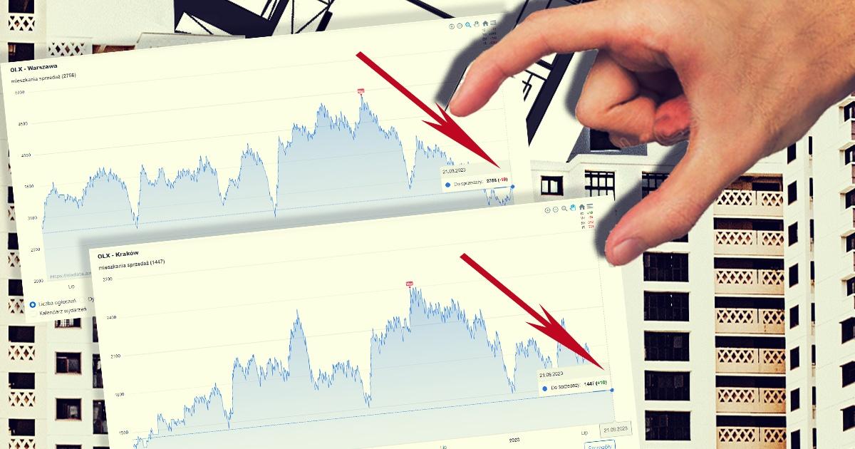 Według danych portali rynekpierwotny.pl i gethome.pl oferta mieszkań na rynku pierwotnym spada. W Krakowie pod koniec sierpnia było o 44% mniej mieszkań niż w grudniu 2022 r. We Wrocławiu o 37%, a w Warszawie 34% mniej mieszkań. Średnio w 10 największych miastach polski w ofercie deweloperów pod koniec lipca br. było ponad 47 tys. mieszkań, czyli o 27% mniej niż na koniec 2022 r.