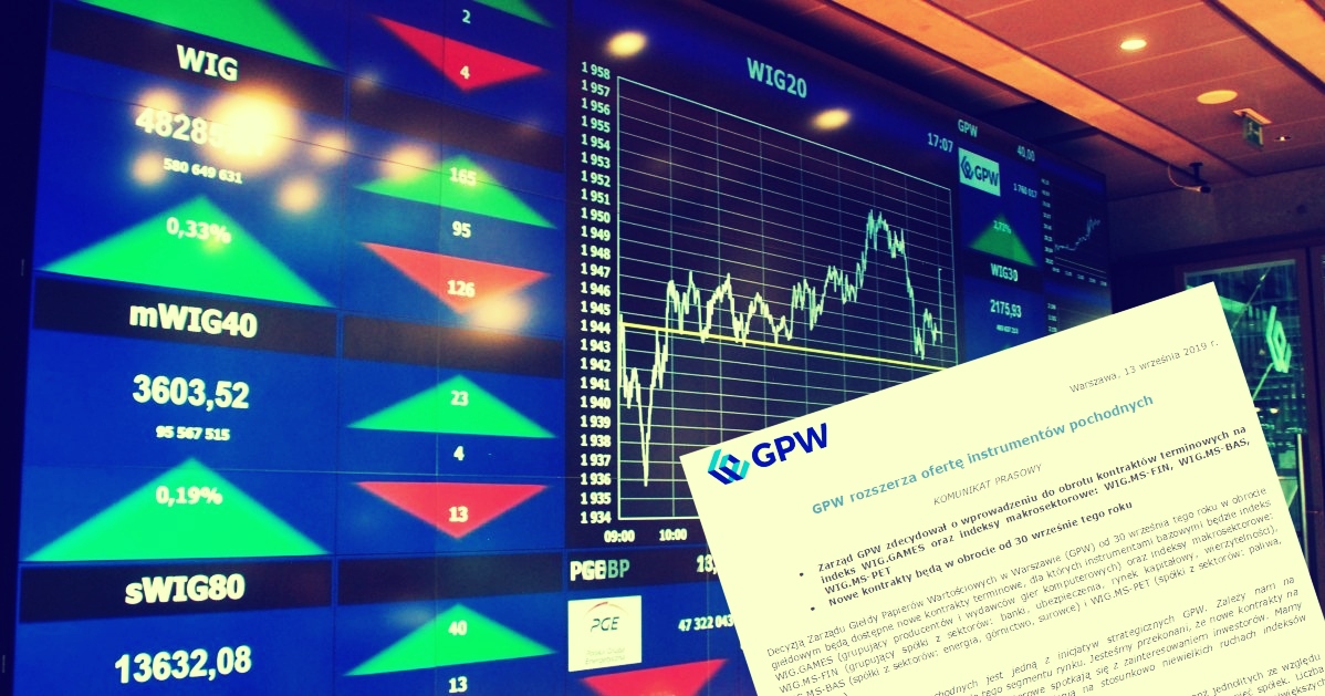 Komisja Nadzoru Finansowego w sierpniu zatwierdziła warunki obrotu na wprowadzenie nowych kontraktów terminowych opartych o cztery indeksy. Dla każdego z nich zostaną wprowadzone po trzy serie kontraktów terminowych wygasających kolejno w grudniu 2019 roku, marcu 2020 roku i czerwcu 2020 roku. Mnożnik będzie wynosił 1 zł dla kontraktu terminowego na indeks WIG.GAMES oraz 2 zł dla kontraktów terminowych na trzy indeksy makrosektorowe. To oznacza, że w przypadku kontraktów na WIG.Games ich wartość będzie równa wartości punktów czyli obecnie około 16 370 zł.