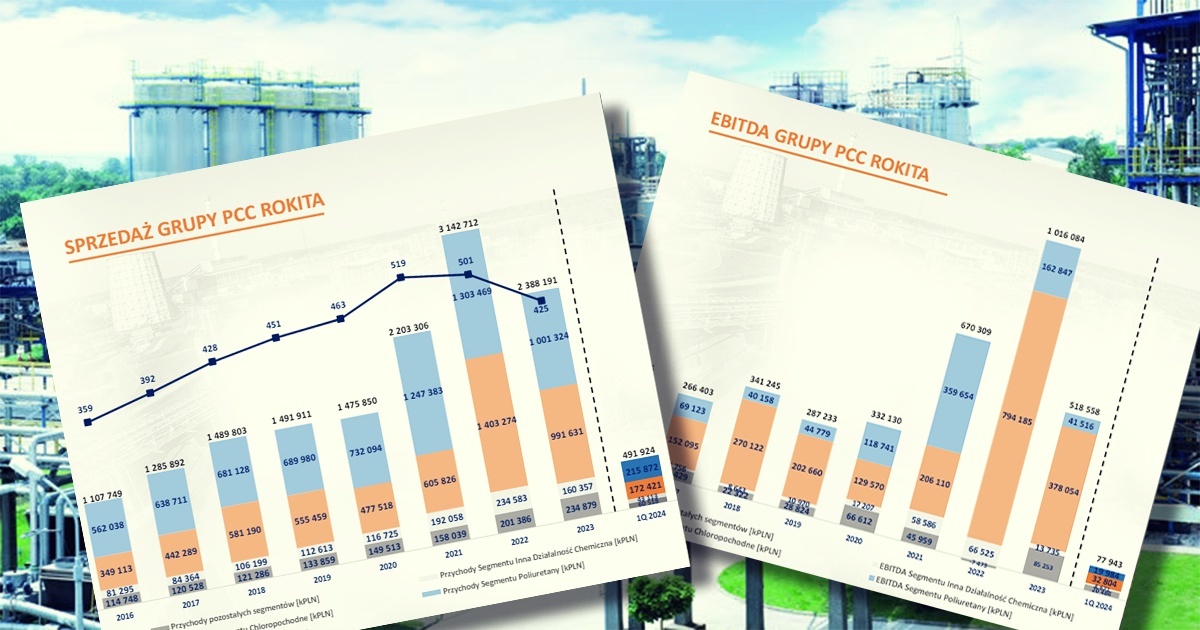 "Wynik EBITDA segmentu był o 13% wyższy niż w pierwszym kwartale 2023 roku" – zaznacza Wiesław Klimkowski, prezes zarządu PCC Rokita w liście do akcjonariuszy.
