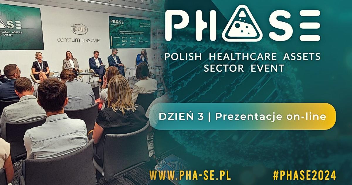 PHASE 2024 to druga edycja największej dyskusji o polskiej biotechnologii medycznej. Już w dniach 27-29 sierpnia 2024 r. odbędzie się tegoroczna edycja konferencji Polish Healthcare Assets – Sector Event (PHASE). Ta największa publiczna dyskusja na temat polskiej biotechnologii medycznej skierowana do uczestników rynku kapitałowego, przedstawicieli instytucji publicznych, przedsiębiorców oraz naukowców zainteresowanych rozwojem tego sektora. W trakcie trzeciego dnia konferencji, 29 sierpnia 2024 przedstawiciele spółek z sektora biotech i medtech zaprezentują się w ramach konferencji on-line.