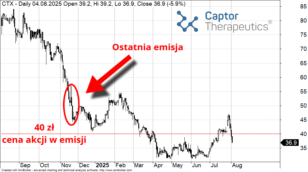 Na koniec pierwszego kwartału 2025 roku Captor Therapeutics dysponował 61,4 mln zł gotówki i aktywów finansowych. Pod koniec listopada 2024 roku spółka skutecznie pozyskała 32.9 mln zł z emisji akcji.