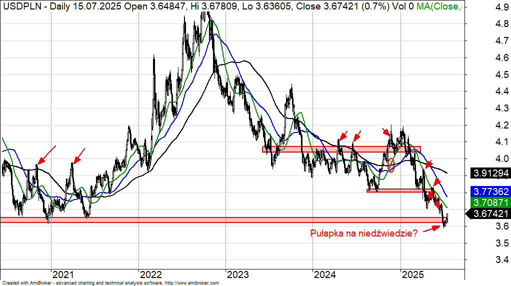 Pułapka na niedźwiedzie na USDPLN się materializuje (roszady w portfelu)